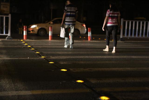 昨天晚上,路過裕華路和友誼大街交口的西側的斑馬線時發現有行人走過的時,發出閃爍的亮光。這又是什么高科技的產品???