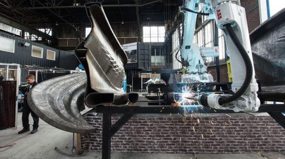 對他們來說,打印大塊的東西是一個巨大的挑戰。你可能會認為這是一個硬件問題,制造更好的機器人就能解決了。但實際上更多的是軟件方面的問題。一直以來,他們的想法都是使用現成的工業機器人,這樣客戶就可以直接訂購機器人,然后使用MX3D的軟件打印出他們喜歡的任何東西。讓這些機器人焊接具有高性能部件是很復雜的。