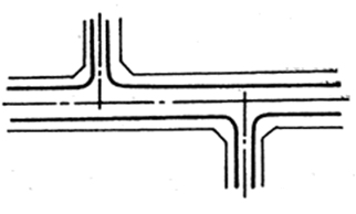 T字形交叉口的變化,交叉口之間的距離應(yīng)大一些,否則將影響主干道上的車速。