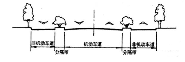 以三條分隔帶使對向車流分行、機動車與非機動車車種分流的橫斷面形式。