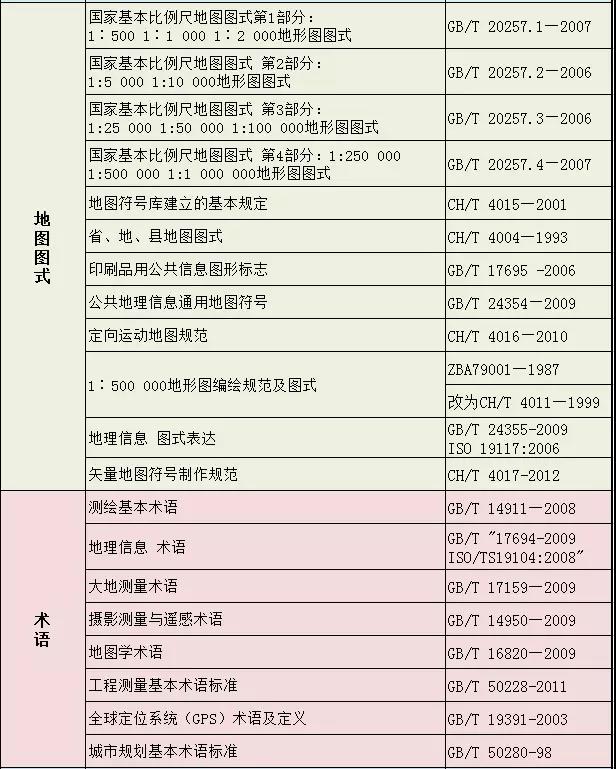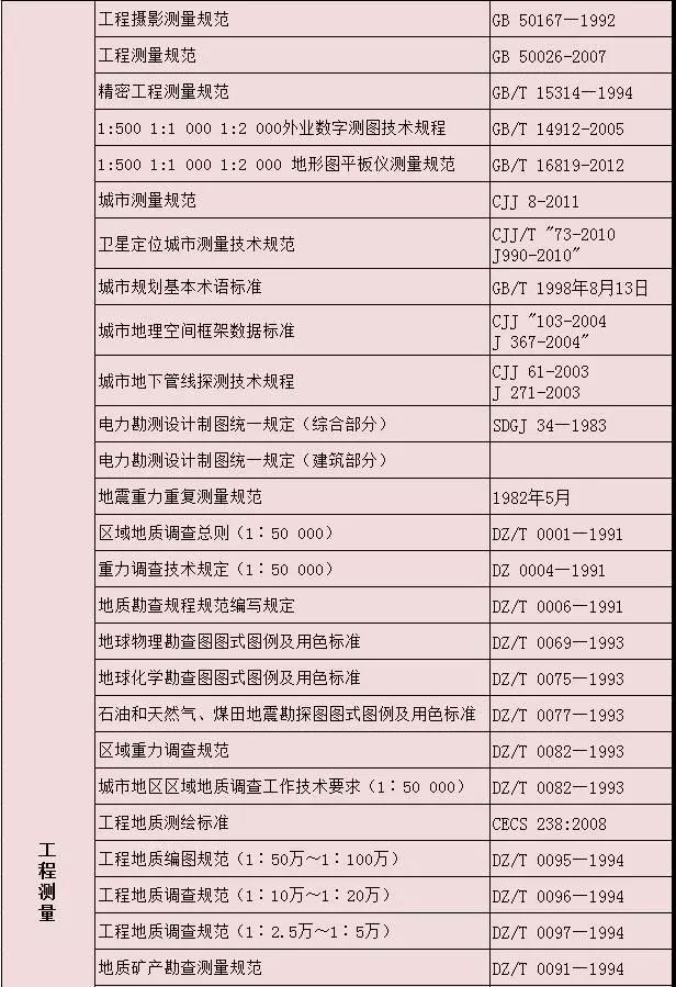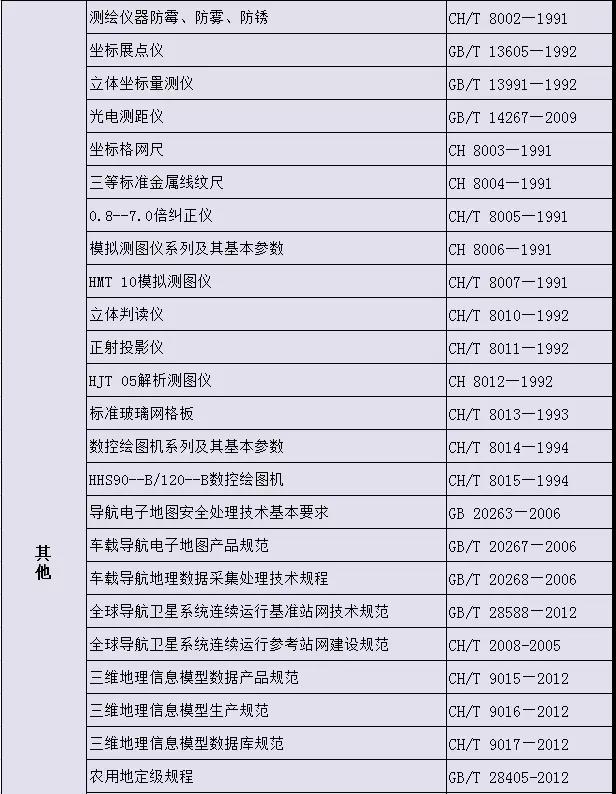 測繪專業相關標準大全