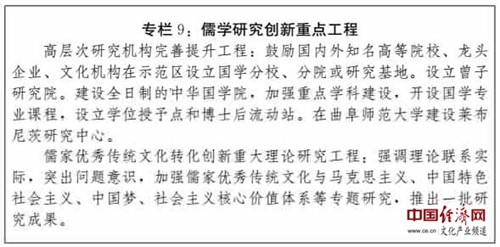 (一)建設(shè)高層次研究機(jī)構(gòu)。加快打造世界儒學(xué)研究交流中心,提升文獻(xiàn)收集、信息共享、學(xué)術(shù)研究、人才培養(yǎng)、博物展覽等綜合功能,使我國(guó)在東亞儒家文化圈中居于主動(dòng),在世界儒學(xué)傳播和研究中始終保持充分話(huà)語(yǔ)權(quán)。以孔子研究院、孟子研究院為引領(lǐng),依托山東大學(xué)、山東師范大學(xué)、曲阜師范大學(xué)、濟(jì)寧學(xué)院、山東社科院等院校,建立完善儒學(xué)專(zhuān)門(mén)研究機(jī)構(gòu)體系。發(fā)揮中國(guó)孔子基金會(huì)作用,探索建設(shè)中國(guó)儒學(xué)中心。堅(jiān)持馬克思主義立場(chǎng)、觀(guān)點(diǎn)、方法,采取歷史唯物主義態(tài)度,與理論工作“四大平臺(tái)”建設(shè)相銜接,結(jié)合時(shí)代要求推動(dòng)儒家優(yōu)秀傳統(tǒng)文化創(chuàng)新發(fā)展。實(shí)施儒家優(yōu)秀傳統(tǒng)文化轉(zhuǎn)化創(chuàng)新重大理論研究工程,突出理論與實(shí)際相結(jié)合,加強(qiáng)相關(guān)重點(diǎn)學(xué)科專(zhuān)業(yè)建設(shè),承擔(dān)更多國(guó)家級(jí)和省部級(jí)研究項(xiàng)目,重視保護(hù)和發(fā)展具有重要文化價(jià)值和傳承意義的“絕學(xué)”、冷門(mén)學(xué)科。提升《孔子學(xué)刊》《孔子文化季刊》等儒學(xué)研究期刊辦刊水平,薈萃國(guó)內(nèi)外各儒家學(xué)派最新理論研究成果,推動(dòng)多語(yǔ)種出版發(fā)行,打造成為集成共享的創(chuàng)新成果高端平臺(tái)。