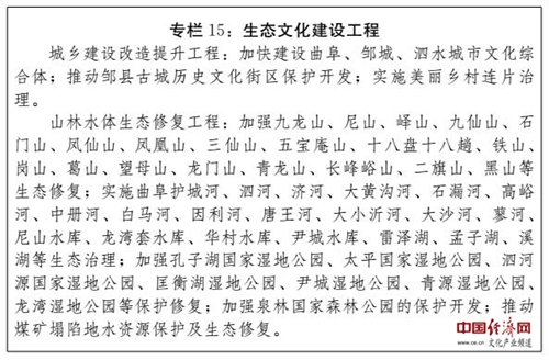 (四)建設(shè)全國(guó)文化經(jīng)濟(jì)融合發(fā)展示范區(qū)。充分發(fā)揮文化引領(lǐng)、滲透和支撐作用,系統(tǒng)推進(jìn)文化資源開(kāi)發(fā),強(qiáng)化文化品牌載體功能,推進(jìn)文化與相關(guān)產(chǎn)業(yè)深度融合,大力發(fā)展文化產(chǎn)業(yè),提升文化產(chǎn)業(yè)園區(qū)、特色基地建設(shè)水平,在更高層次上打造享譽(yù)國(guó)內(nèi)外、彰顯儒家文化永恒魅力的旅游休閑圣地、教育培訓(xùn)基地、健康養(yǎng)生福地和文化創(chuàng)意高地。