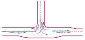 三路相交的交叉口,3個沖突點、3個合流點、分流點。