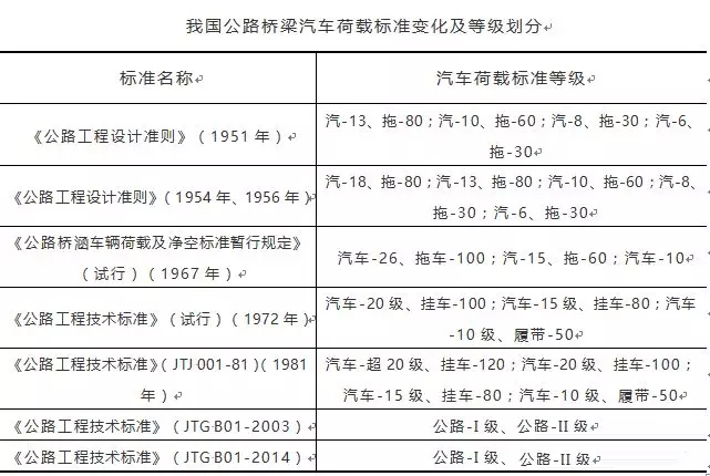我國公路橋梁汽車荷載標(biāo)準(zhǔn)變化及等級劃分