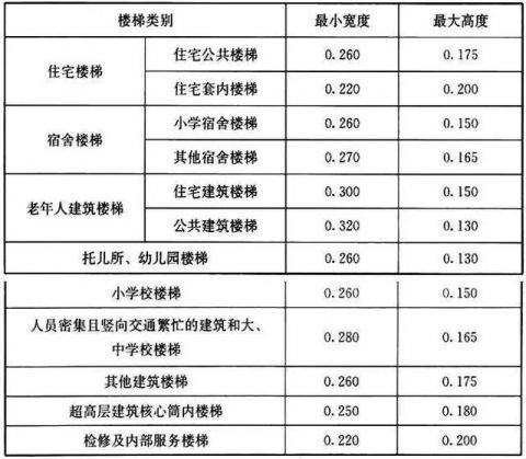 注:螺旋樓梯和扇形踏步離內(nèi)側(cè)扶手中心0.250m處的踏步寬度不應(yīng)小于0.220m