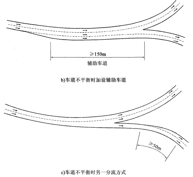 分合流車道平衡應理解為交通量與車道數和通行能力的平衡,不是簡單車道個數的平衡。