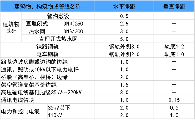 地下敷設熱網與建(構)筑物或其它管線距離