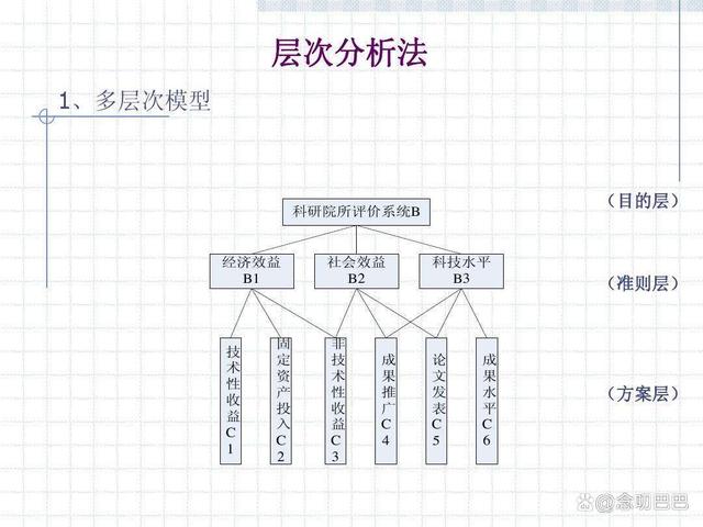 當(dāng)我們面對(duì)一個(gè)問(wèn)題進(jìn)行決策時(shí),首先要分析解決這個(gè)問(wèn)題的各個(gè)決定因素,并把他們梳理,建立成一定的層次結(jié)構(gòu)體系。也就是需要將決策的目標(biāo),考慮的因素和決策對(duì)象分為目標(biāo)層,準(zhǔn)則層和方案層,通過(guò)層次分析,決定方案的決策次序。