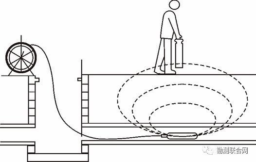 該法信號強,定位、定深精度高,易分清近距離管線,但金屬管線必須有出露點,且需良好的接地條件。