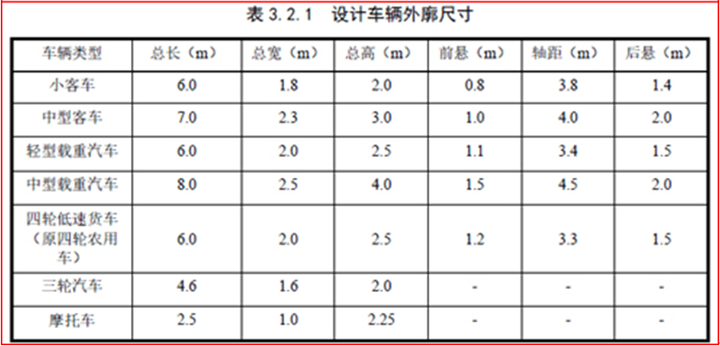 《規(guī)范》表3.2.1 設計車輛外廓尺寸
