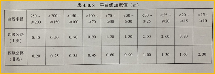 《標準》表4.0.8 平曲線加寬值