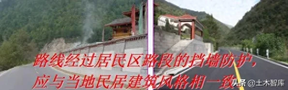 高陡土質(zhì)邊坡,低擋墻、三維網(wǎng)綠化,減少生硬高大的擋防結(jié)構(gòu)。