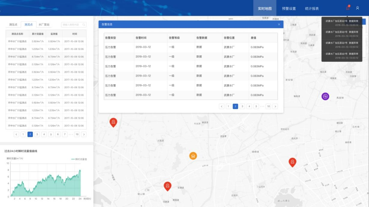根據中控采集數據如果測壓點低于臨界值,自動發出報警。