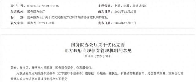12月25日,《中國銀行保險報》記者從中國政府網獲悉,國務院辦公廳近日印發《關于優化完善地方政府專項債券管理機制的意見》(以下簡稱《意見》)。